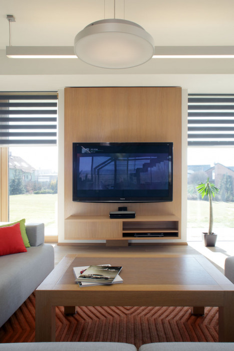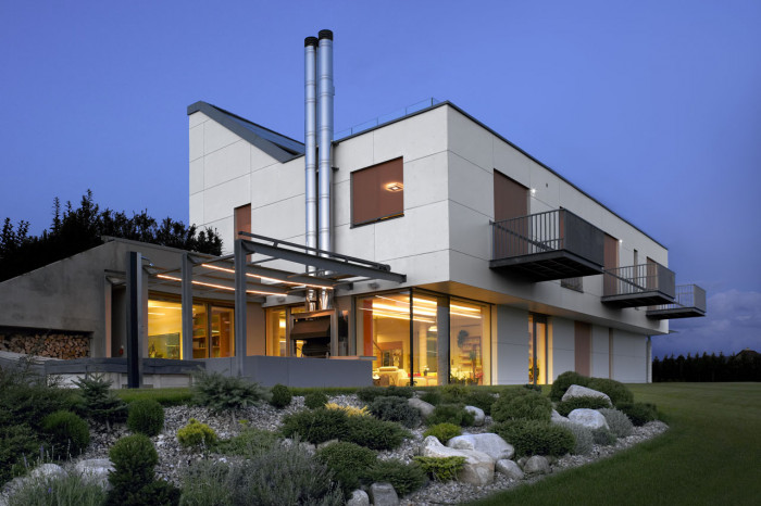 Rodinný dům byl navržen jako dvoupodlažní s jasnou funkční dispozicí poskytující dostatek prostoru pro vícečlennou rodinu. Architekti se také snažili propojit dům s okolní zahradou. V přízemí domu mohou obyvatelé využít několik teras, které tak rozšiřují hlavní obytný prostor, v patře pak na pokoje navazují prostorné balkony. Propojení interiéru s okolím se navíc zdůrazněno použitím velkoformátového zasklení.