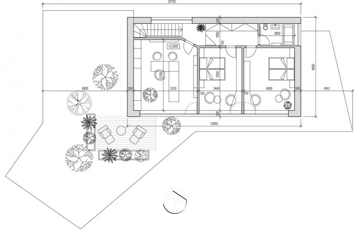 Lichoběžníková terasa jako zpestření jinak pravoúhlé dispozice