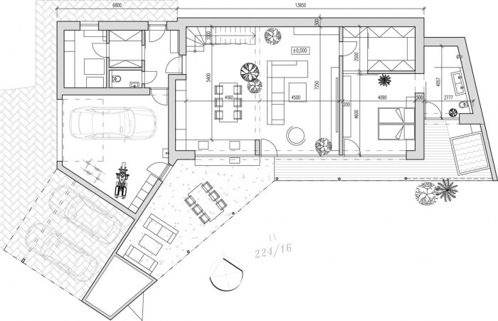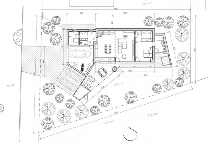 Snahou autora bylo již od samého začátku umístit dům na pozemku tak, aby byla maximálně využita zahrada. Ideálně tak zpřístupňuje světové strany a vytváří uživatelům domu potřebné soukromí a současně plně odpovídá základním principům pro pasivní fungování domu.