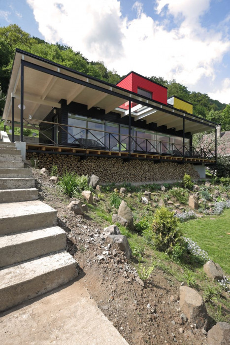 Zato ale pevná stavebníkova vazba k pozemku s chatou postavenou jeho prarodiči a výjimečný panoramatický výhled na meandrující řeku.