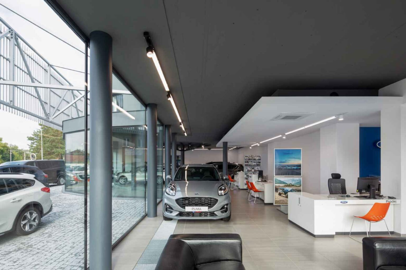 Transformace prodejního místa zahrnovala zvětšení prodejní plochy, nové dispoziční řešení interiéru a výměnu podlah i stropních prvků. Současně došlo k modernizaci obvodového pláště objektu pomocí zateplení a instalace velkorysých skleněných výkladců, které zajišťují lepší kontakt s ulicí i vizuální propojení se showroomem. Prostor před budovou byl upraven pro vystavení vozů tak, aby podpořil prezentaci nabídky a umožnil bezpečný a reprezentativní pohyb zákazníků v okolí autosalonu.