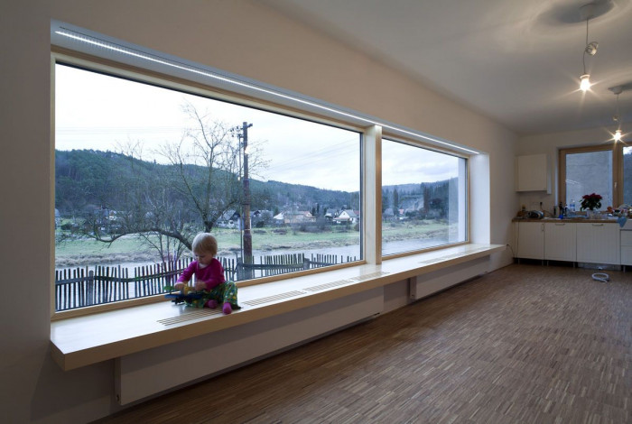 Objekt je jednopodlažní s podkrovím a je částečně podsklepen, původní hmota zůstává beze změny a splňuje podrobnou regulaci CHKO Křivoklátsko, obytné místnosti v přízemí a podkroví jsou umístěné při východní fasádě orientované k řece Berounce. Hlavním zásahem do původního objektu je pevně zasklené 6,2 m široké okno s rozšířeným pobytovým parapetem, které je umístěno po celé délce obývacího prostoru v přízemí
