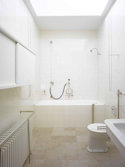 Nové statické zajištění zahradní terasy a schodiště. Obnova a zprovoznění kotelny, vzduchotechniky a spouštěcích oken. Nová instalační vedení s koncovými prvky v autentické podobě - vodovodní armatury, sanita, radiátory, světla, vypínače a zásuvky.