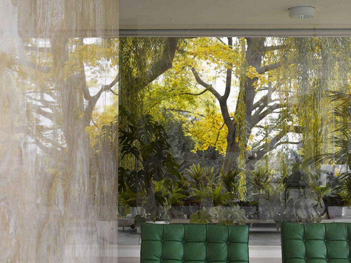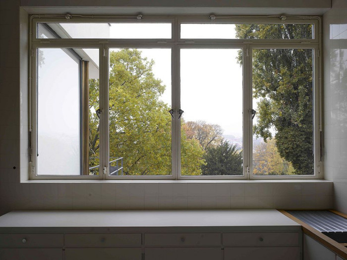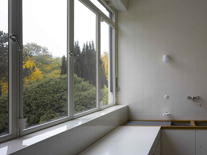 Restaurování všech dochovaných venkovních a vnitřních omítek a opětovná instalace čirých a leptaných skel v původních rozměrech. Nové linoleum, keramické dlažby a obklady. Kopie suchých zahradních zídek a obnova zahrady. V interiéru restaurování dochovaného a doplnění chybějícího vestavěného mobiliáře se zakomponováním kopie půlobloukové jídelní stěny s opětovně nalezenými díly. Doplnění kopií volně stojícího nábytku, textilií a interiérové vegetace.