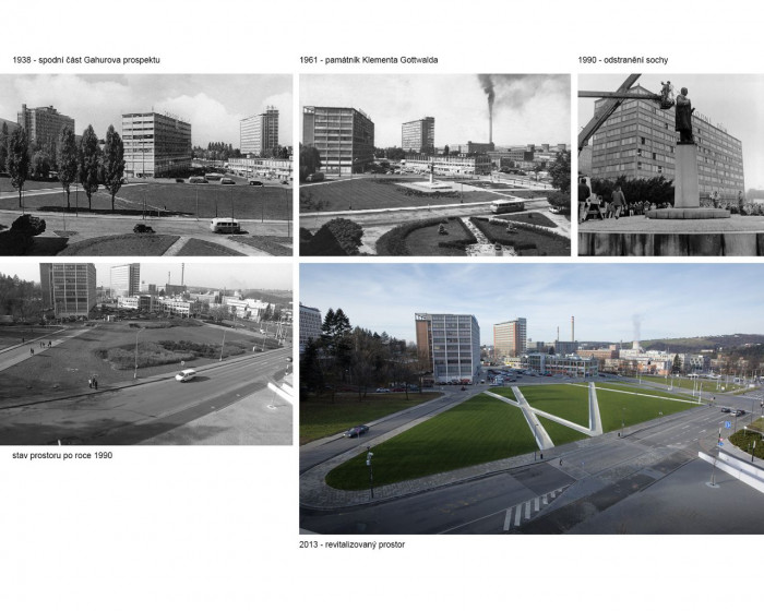 Proměna Gahurova odkazu začala a pokračovala v roce 1961, kdy byla v dolní části prospektu – v řešeném území – osazen pomník komunistického prezidenta Klementa Gottwalda, po němž bylo město přejmenováno. Pomník byl v roce 1990 deinstalován, prostor zůstal neřešen a na místě Masarykových škol bylo v roce 2007 postaveno Kongresové centrum a rektorát Univerzity Tomáše Bati.