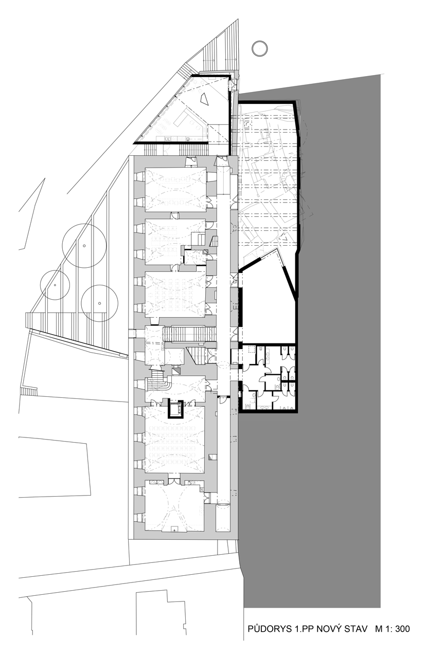 Ambicí projektu bylo i vytvoření společenské aktivní zóny okolo budovy, vlastně veřejného prostoru pro živelné občanské využívání. Vznikly tak pobytové schody, plošina a kašna.