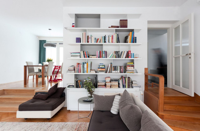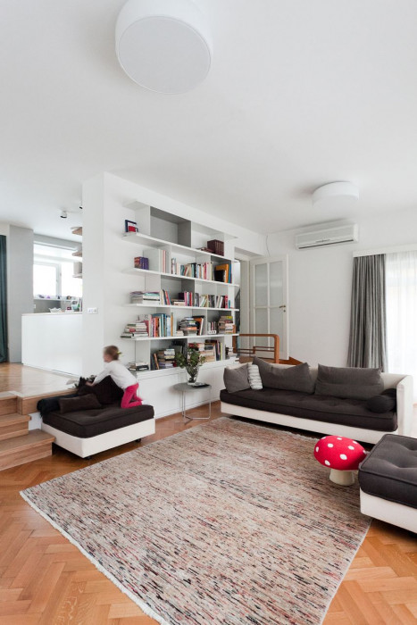 Vzhledem k vertikalitě uspořádání bydlení byl navržen a realizován centrální vysavač. Navržené povrchové materiály navazují na ty původní (stěrky, lak, dubové vlysy), při použití soudobých technologií tak zajišťuj provozní a uživatelskou funkčnost. Byly též odstraněny dispoziční nedostatky jako úzké vstupy, absence zádveří, průchozí pokoje nebo předimenzované technické zázemí. Vzhledem k lokalitě bylo cílem v rámci citlivé rekonstrukce získat maximum opravdu užitných ploch, v suterénu se proto do tloušťky nosné zdi vešla komfortní vestavěná skříň.