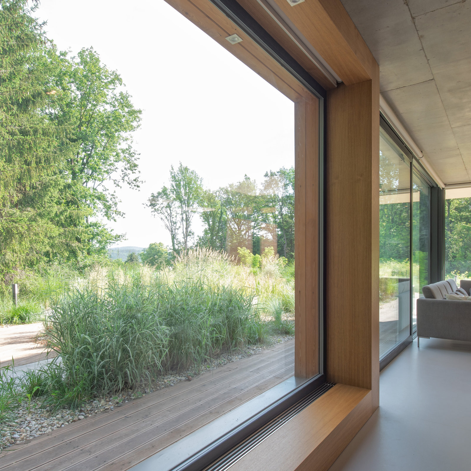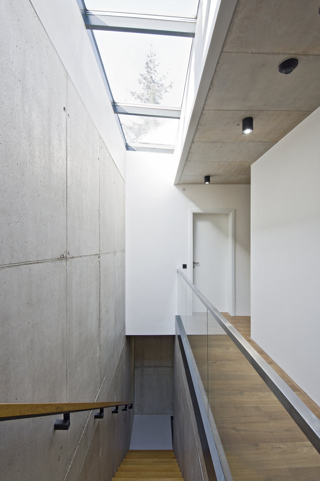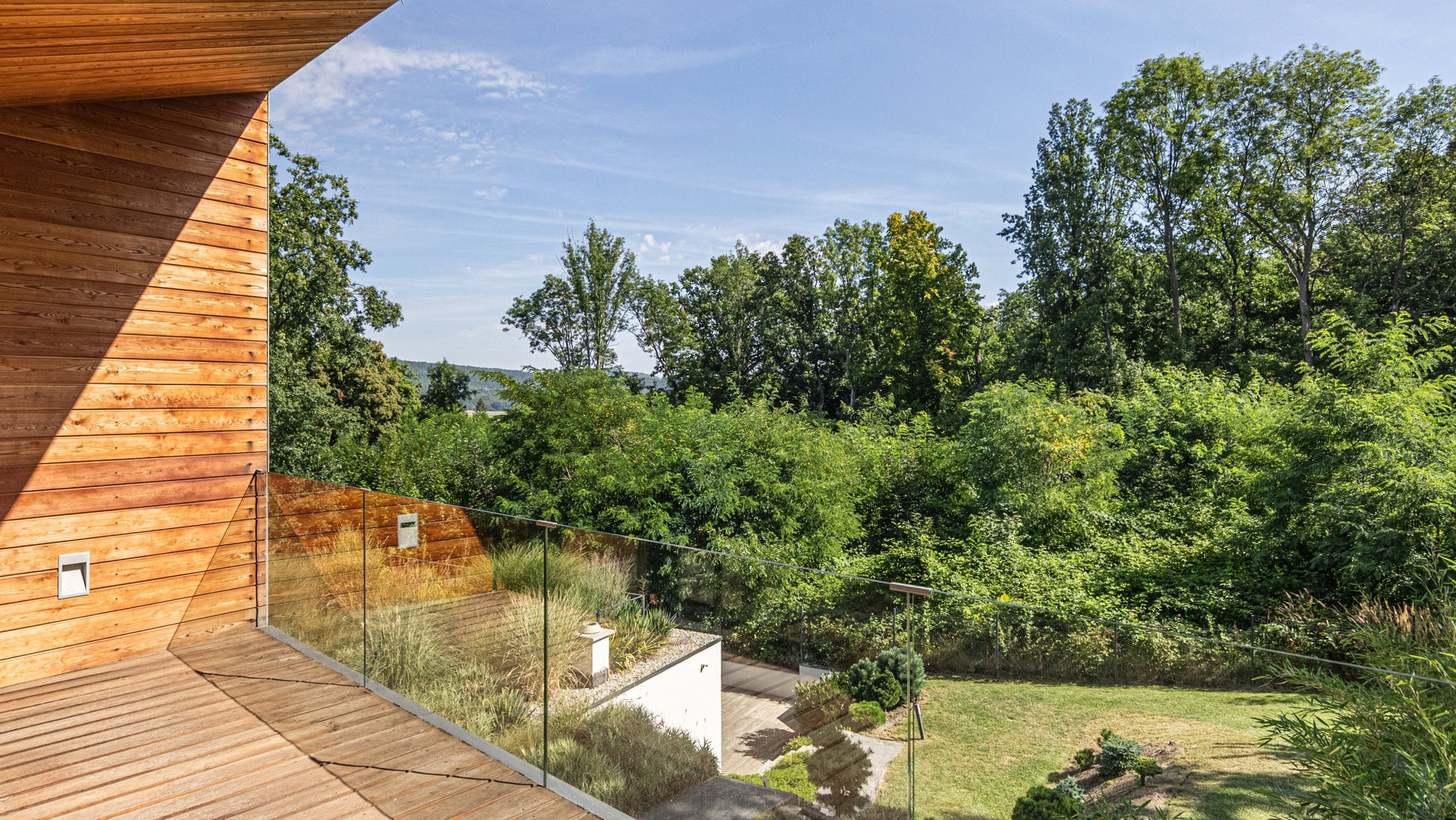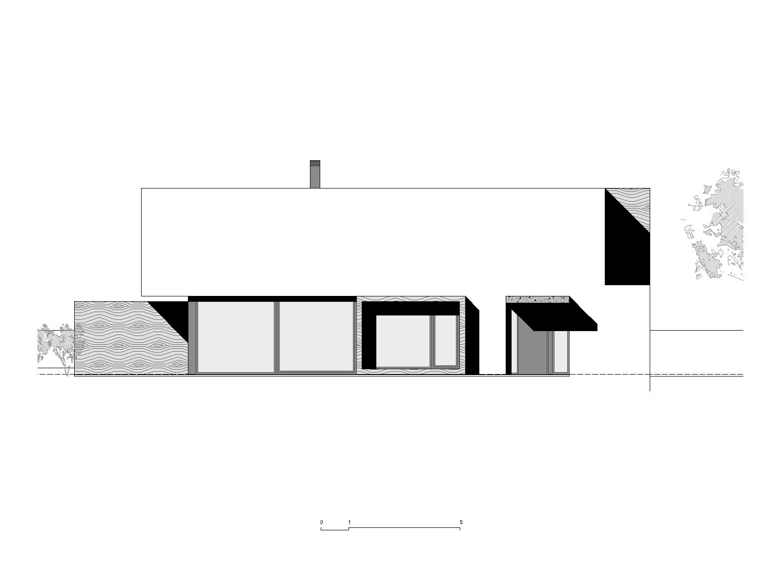 Cílem návrhu bylo propojení interiéru stavby s exteriérem – jak faktické prostřednictvím prosklených stěn v přízemí, tak i optické v obytných místnostech ve druhém podlaží.