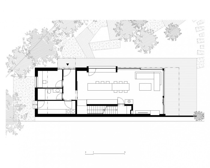 Novostavba rodinného domu je umístěna v komplikovaných podmínkách členitého pozemku a s limitovanou velikostí stavby. Dispozice domu jsou účelné a splňují nároky uživatelů. Řešení interiéru je založeno na kombinacích vybraných základních materiálů použitých v maximální možné míře v jejich přirozených formách.