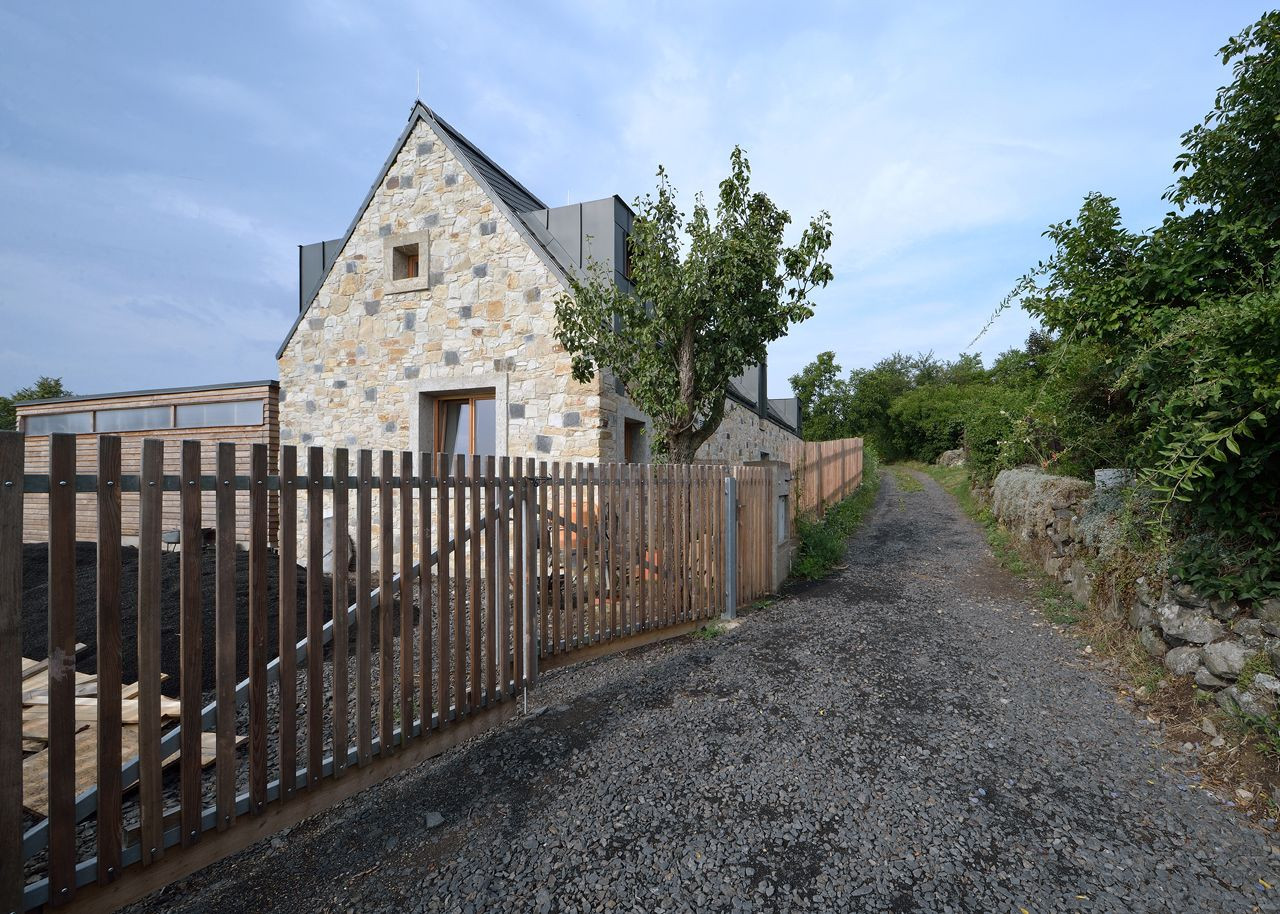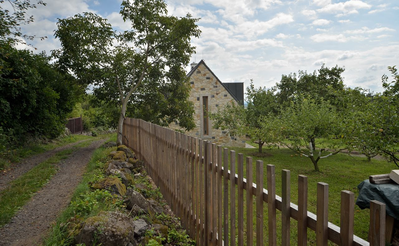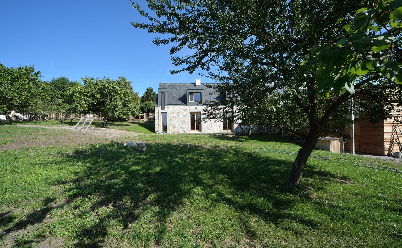 Kámen na obvodový plášť domu z nedaleké bourané stodoly je fyzicky konkrétním projevem kontinuity místa. Byli bychom rádi, kdyby sem dům brzo přirozeně patřil a kdyby se v něm stavebníkova rodina cítila co možná nejdřív doma.