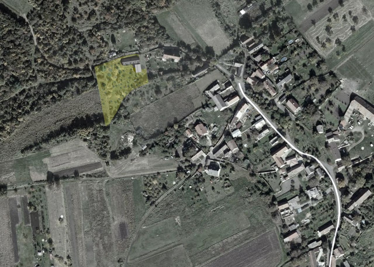 Stavebníkova parcela na severním konci obce je spojem a zároveň hranicí mezi zástavbou a volnou krajinou. Velikost, tvar, materialita i barevnost domu a také umístění a orientace navazuje na charakteristickou zástavbu obce.