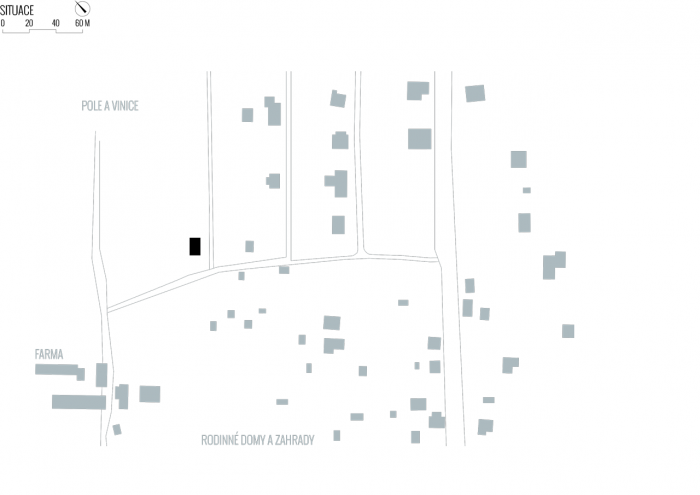 Umístění domu ve středu nevelké parcely na okraji města opomíjí tradiční dělení zahrady a akcentuje propojení domu s charakteristickými výhledy do krajiny. V každé fasádě je zapuštěn jediný otvor, přičemž počet otvorů se rovná počtu unikátních výhledů do okolí, které rámují specifický a pro každou stranu odlišný výhled – panorama města, vinice a zahrady, poutní kostel Nejsvětější Trojice v Chloumku a panorama Řípu.