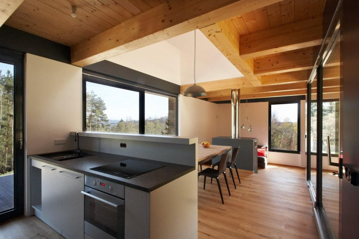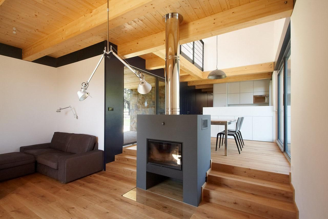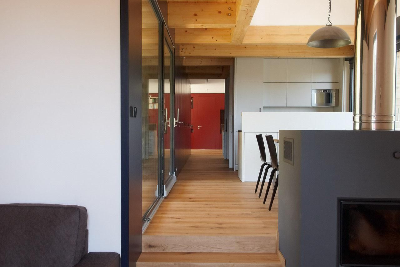 Náš návrh stavby vychází z principů místní lidové architektury, kdy je polovina domu kamenná a polovina dřevěná, čímž byl dům jednoznačně rozdělen na hospodářskou a obytnou část. Dalším inspiračním zdrojem byly průjezdné stodoly, které se v návrhu propsaly do velkých prosklených částí. Tyto průhledy vnáší do interiéru jižní světlo a přitom ponechávají jedinečný severní výhled na les a vrcholky Krkonoš.