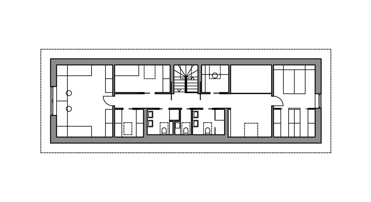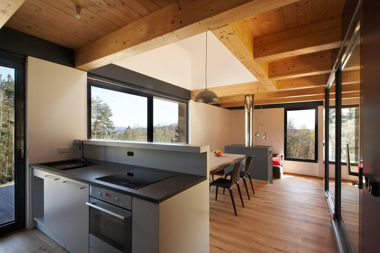 Zadání rodinného domu v Českém ráji nás očarovalo již při prvním setkání s investory. Jedinečný pozemek u lesa s výhledy na přilehlé skály a lesy měl pouze jedinou překážku; leží totiž v II. zóně odstupňované ochrany přírody a krajiny Chráněné krajinné oblasti, která má pevně stanovené regulativy. V rámci odborného stanoviska správy CHKO Český ráj jsme obdrželi doporučení k architektonickému ztvárnění objektů. Dovolíme si citovat například odstavec o oknech: „Hlavní okna by měla být obdélná, osazovaná na výšku, dělená, s poměrem stran cca 2:3 až 4:5, šířka oken typická pro oblast Českého ráje se pohybuje v rozmezí 0,7 až 1,2 m; velikost oken ve štítové stěně se směrem vzhůru zmenšuje, plocha stěny venkovského domu vždy výrazně přesahuje nad plochou oken; počet oken ve štítové stěně se pohybuje mezi 2 až 4,…“ Stejně tak byly popsány povrchy, střecha, pozice komínu, poměry objemu objektu apod.