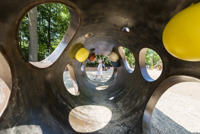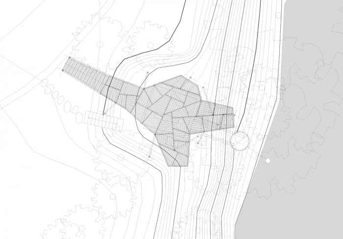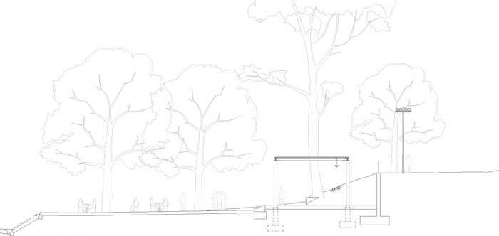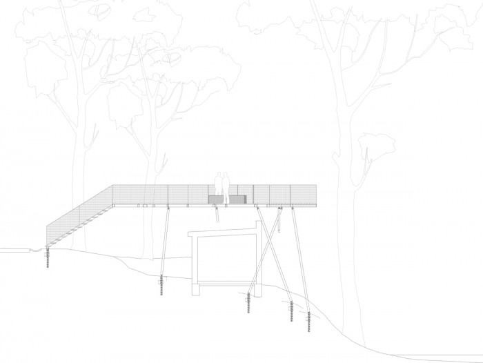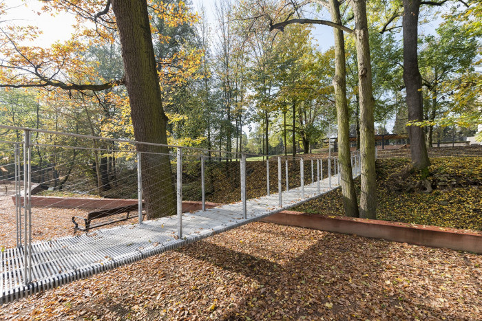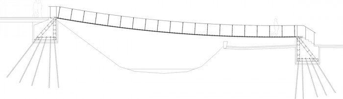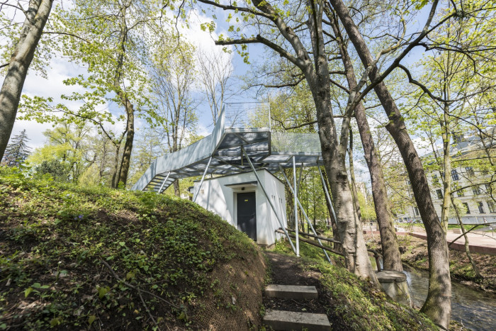 Pás svažitých břehůřeky Loučné byl záměrně ponechán co nejvíce nedotčený umělými zásahy, které by mohly přetížit jejich přírodní charakter. Ten chápeme jako jednu z největších hodnot v území. Prostor je zachován ve své divokosti a zpřístupněn pouze na vybraných místech lehkými moly z pororoštů a vyhlídkou umístěnou v úrovni korun stromů nad objektem vodárny. Břehy jsou přemostěny visutou pěší lávkou. Ta je, stejně jako pozorovatelny, navržena jako subtilní a transparentní ocelová struktura, co nejméně zasahující do přírodního okolí. Další přechod přes řeku tvoří brod z žulových balvanů, který je součástí chodníčku vedoucího z nábřeží na pobytovou louku na druhém břehu.