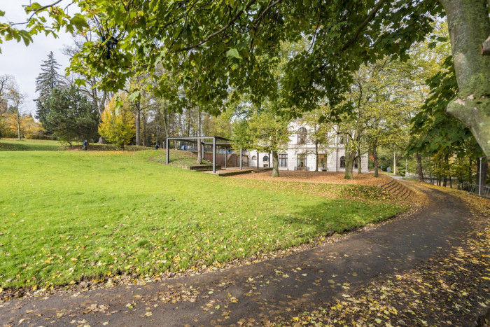 Zásahy v horní části parku u Smetanova domu jsou pouze menšího rozsahu, což bylo zadáním soutěže. Křovinami zarostlá plocha nad řekou je upravena na prosluněnou pobytovou louku, která schází v dolní části území. Obnovena byla také ladem ležící plocha u Smetanova domu, která je nově doplněna o ocelový pavilon se zelenou střechou. Ten slouží jako zázemí pro příležitostné kulturní akce a navazuje na zahradní restauraci.