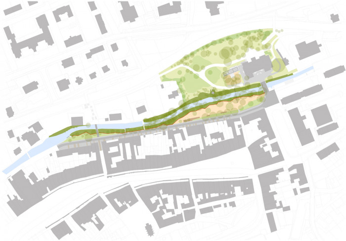 Návrh stojí na koncepci obnovy a propojení čtyř různých městských prostorů – nábřeží, břehůřeky, parku a ulice – do jednoho funkčního celku. Velký důraz byl přitom kladen na zachování a posílení přirozených kvalit místa, zejména pak přírodního charakteru břehůřeky Loučné.