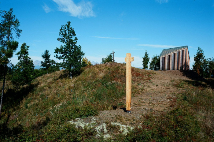 Z daru sme financovali drevenú časť. Kaplnka opäť stála rok bez dokončenia. Ani rozostavaný projekt nám nepomohol k ľahšiemu získavaniu ďalších prostriedkov. Minulý rok sme zrealizovali oceľový krov a túto jar sme svojpomocne namontovali strešnú krytinu z priehľadného vlnitého laminátu. Smrekovcové drevo medzičasom pekne zosivelo a objekt lepšie zapadá do prírody. Vnúro kaplnky si ale ponechalo svoju červenú farbu, čo vo mne evokuje spomienky na tmavé gotické katedrály zaplnené farebným svetlom vitráží. Na drevenej soche vzkriesenia Krista pracuje miestny sochár Otto Korkoš, ktorého práca je zakorenená v odkaze Majstra Pavla z Levoče.