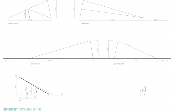 Severský stánok sa odlišuje od okolitých stánkov jeho priestorovou deformáciou, čím ho stavia do pozície čestného hosťa a zároveň tým reaguje na určitý stereotyp vystavovania na veletrhoch.