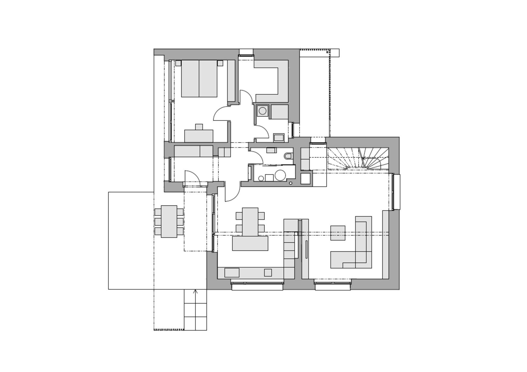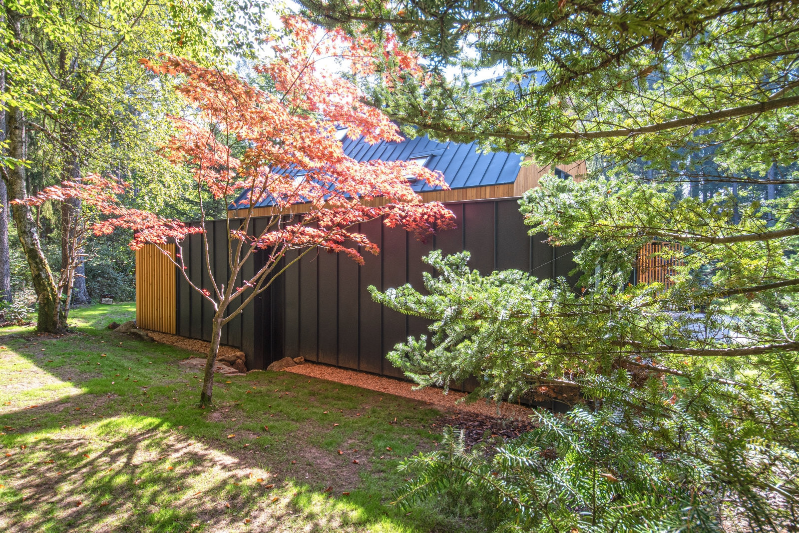 Rekonstruovaná část domu byla dříve využívaná jako rekreační chata. Majitelé si místo natolik oblíbili, že se rozhodli pro celkovou přestavbu a rozšíření.