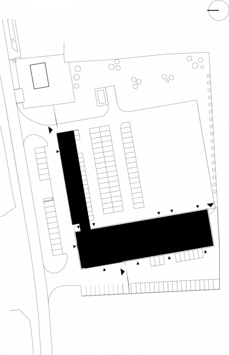 Základní urbanistická koncepce je založena na dvou kvádrových hmotách umístěných do tvaru L a vzájemně provozně propojených. Hlavní dvoupodlažní hmota haly je umístěna kolmo k ulici Hodkovická . Hala má rozměry 73,5 x20x 8 m. Na ní souběžně s ulicí je napojeno administrativní křídlo nového objektu. Tento objekt je vynesen na žb . sloupech a funkčně je umístěn v úrovni 2.np, tedy cca 4 m nad terénem. Má rozměry 51x 9,4 x 4,4m.