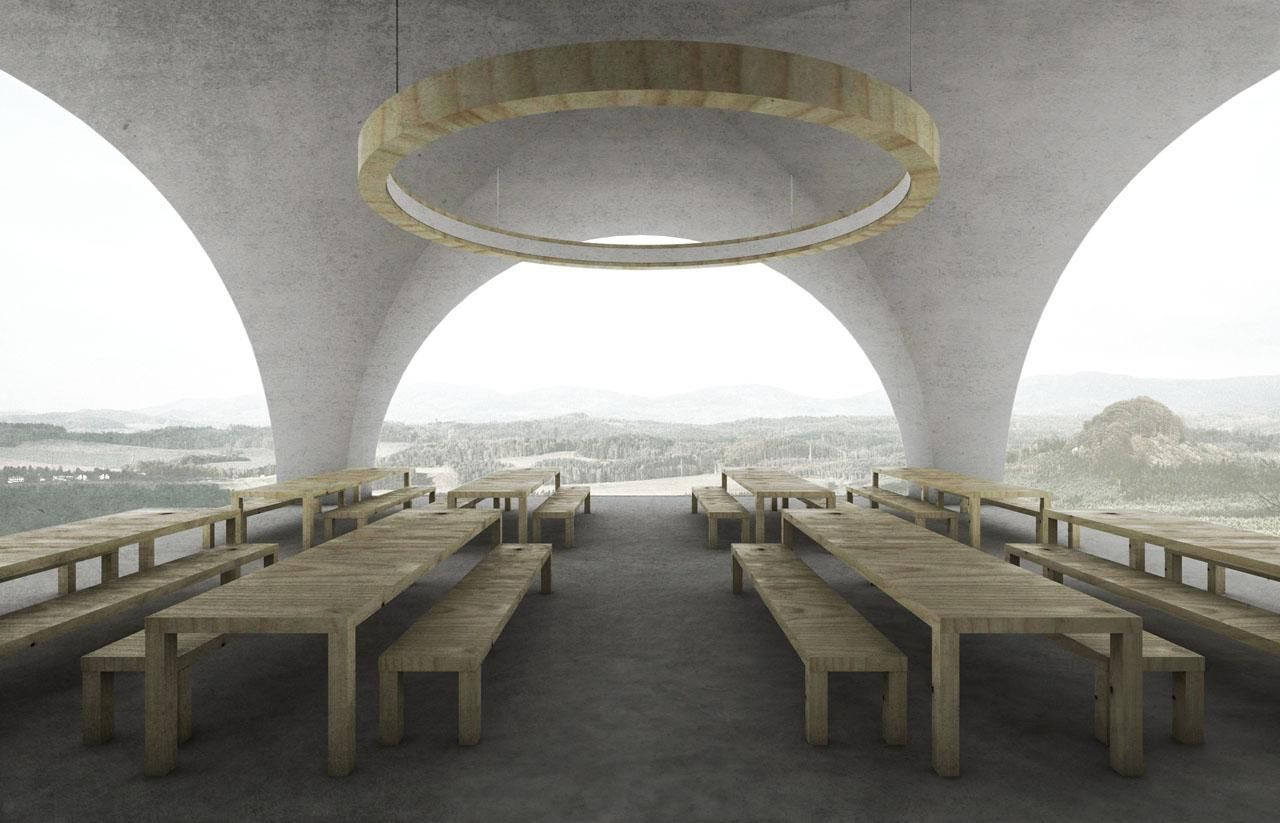 Budova školy je zatesaná do Širokého kamene, stolové hory s obrovskou plošinou, kterou zpřístupňuje a obývá. Je to věž nad rozléhlými lesy a jezery; je to lidský zásah.