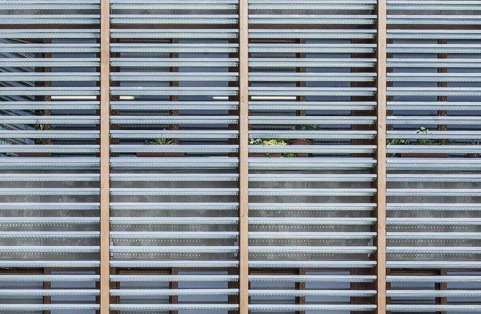 Rozšíření budovy se skládá z kovové (parazitové) struktury. Ta je podporováno kovovými pilíři. Jižní fasáda měla vždy několik problémů se slunečním světlem, které svítilo do učeben v průběhu roku. Návrh je založen na pasivním systému pevných kovových a perforovaných žaluzií, které regulují nepříjemné sluneční světlo. Zároveň zajišťují dobré větrání učeben. Kovové roletové žaluzie jsou také dostatečně odolné, aby snesly míčové nárazy dětí na školních hřištích.