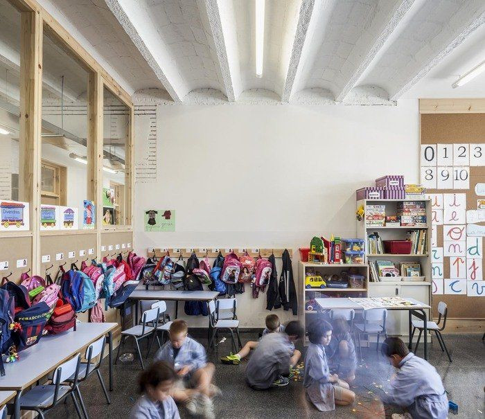 Hlavními zásahy jsou kompletní rekonstrukce interiérů a malá rozšíření o 240 m2 předchozích 1200 m2 s novou jižní fasádou. Návrh zahrnuje také dvě nová hřiště: jedno na vrcholu budovy a další na střeše vstupu do sportovního centra. Konečně je pak také k verandě přidán východ do hlavní ulice.