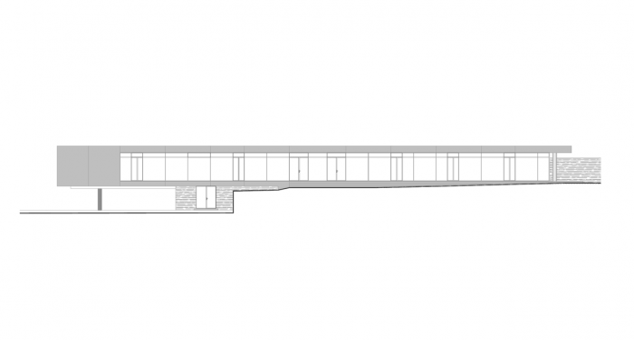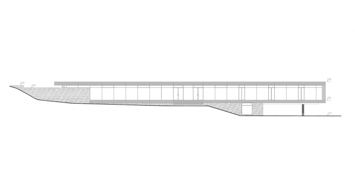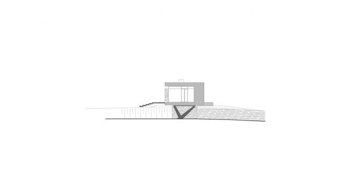 Fasáda budovy tak tvoří vizuálně minimalistický koncept 4 pruhů: kámen – beton – sklo – beton se postupně vynořují ze svahu, vystupují nad terén, ve spodní části se od terénu přízemí odpoutává a končí v prostoru na železobetonové podpěře tvaru „y“ s výhledem do krajiny.