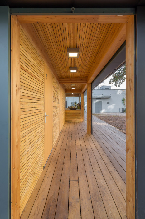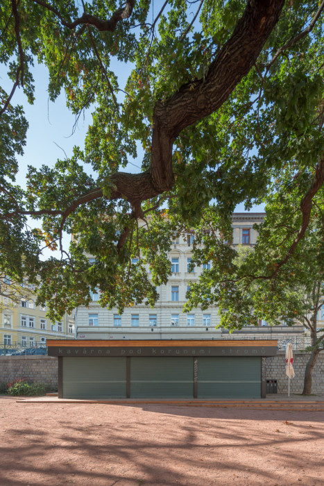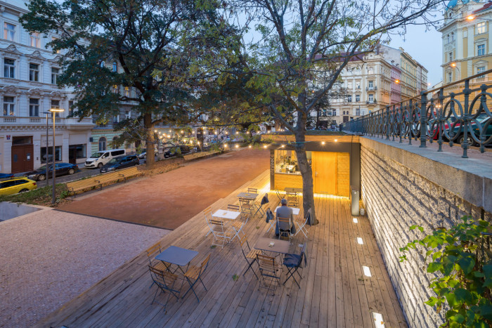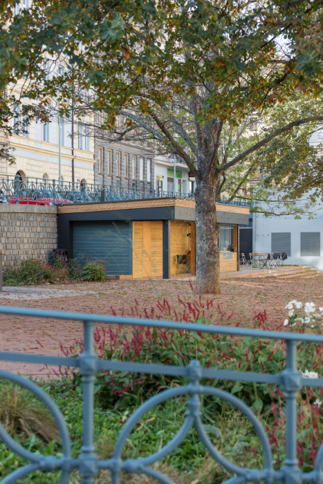 Zázemí tvoří nově navržená dřevostavba kavárenského stánku zahrnující bezbariérové toalety a prostor pro skladování mobilního nábytku a zahradních her. Kavárenský stánek zároveň podporuje kulturní a sociální aktivity a zvyšuje bezpečnost prostoru.Revitalizovaný veřejný prostor poskytuje podmínky pro odpočinek, práci, hru, setkávání, občerstvení, muzicírování, tančení, sdílení, výstavy pod širým nebem a mnoho dalších aktivit všech generací obyvatel této části Žižkova a lidé mu postupně znovu vdechují život.
