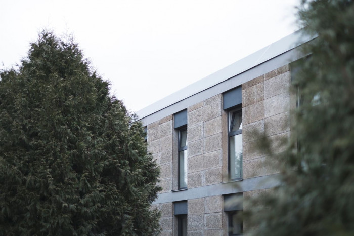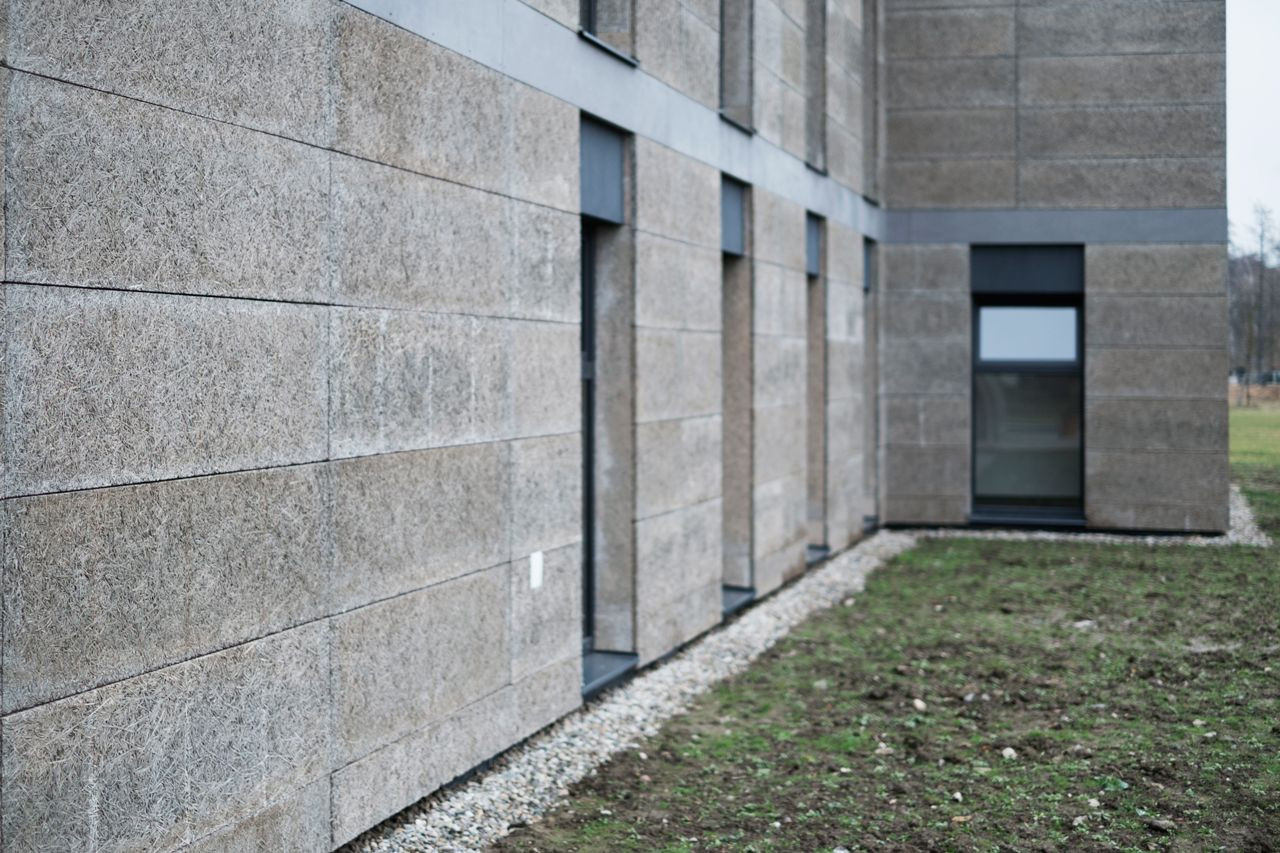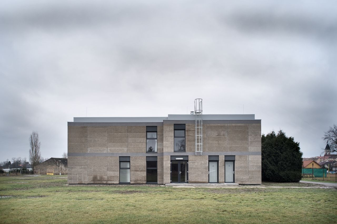 Z finančních důvodů není možné řešit samostatně zateplování fasád a jejich dodatečné obkládaní, neboť to vytváří vícenáklady. Navrženo je proto zateplení objektu fasádními deskami Heratekta C2 031 v tloušťce 100 mm, které dále nepotřebují být a nebudou povrchově upraveny. Rastr desek a jejich povrchová struktura vytváří vizuálně atraktivní celek. Kvůli zvýraznění horizontál obou podlaží je objekt v úrovní stropní a střešní desky obložen zateplovacím systémem z minerální vaty a omítnut.