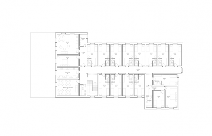 Navržená dispozice respektuje podmínky zadavatele a vytváří tři samostatné provozní celky, které mohou být v případě potřeby propojeny.