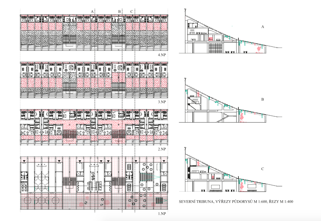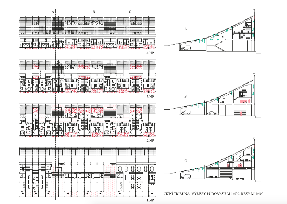 Opravit chátrající tribuny, najít jim novou funkci, reálnou. Bydlení v tribunách Strahovského stadionu. Výhled, lokalita. Lukrativnost bydlení se promítá do jeho ceny a tím zachraňuje, transformuje, oživuje chátrající památku. Nový druh bydlení, nový obyvatelé, potkávají se spolu se studenty, vytváří město.