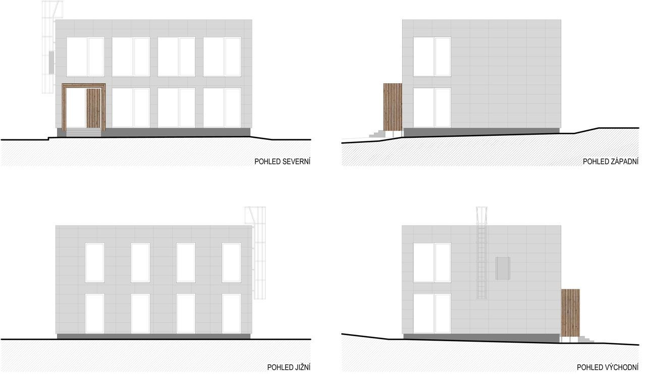 Stávající stav objektu byl v základní hmotě zachován, avšak zcela nového výrazu budovy dosáhli autoři změnou použitých materiálů a drobnými stavebními úpravy (zvýšení atiky, sjednocení rozměrů oken apod.. Navíc bylo přáním investora rozšířit dům o samostatný objekt s multifunkčním využitím.