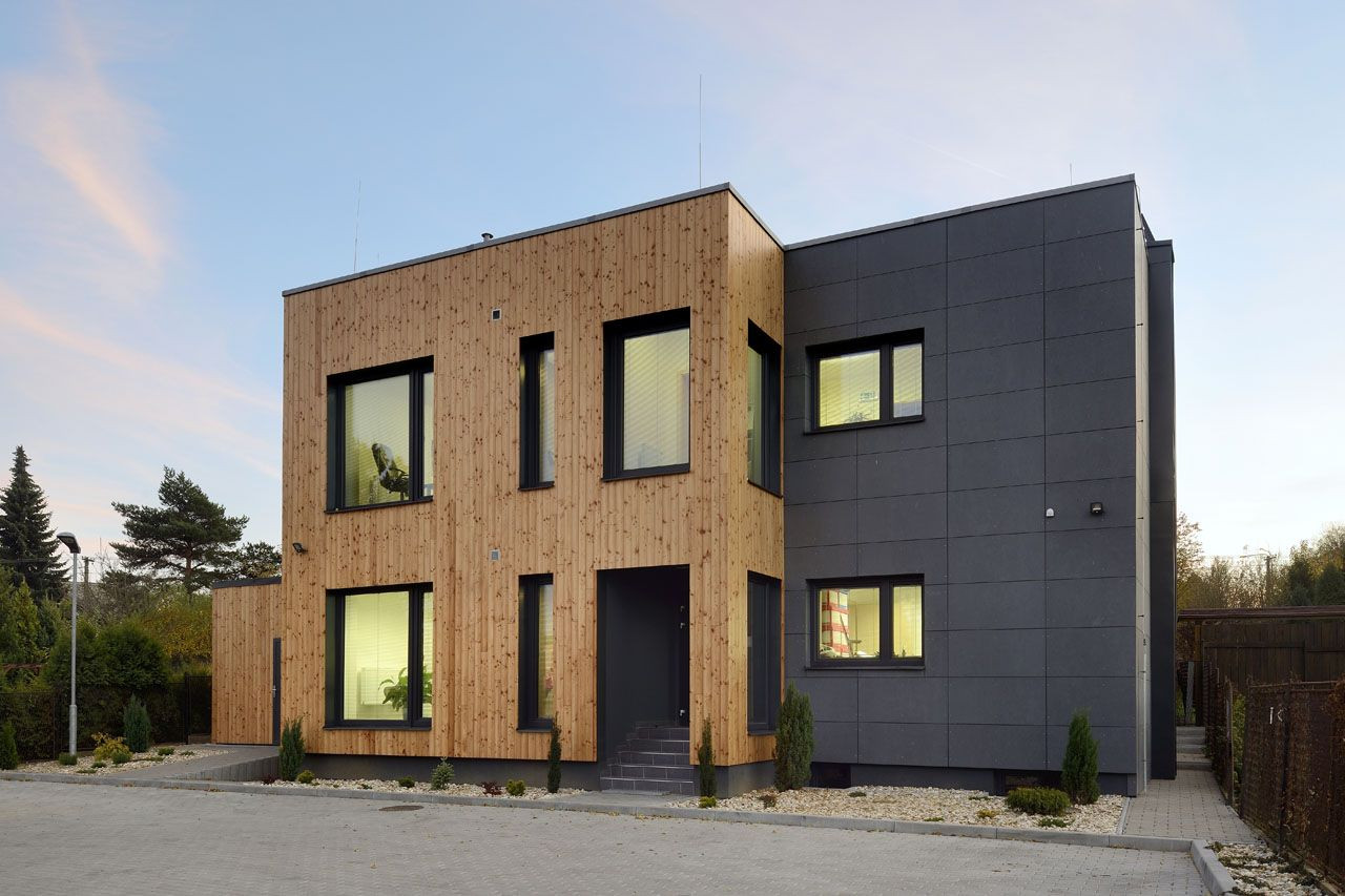 Vláknocementové fasádní desky v kontrastu s modřínovým dřevem