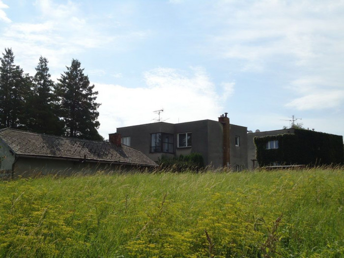Z východní části přiléhala původně k objektu garáž, kterou autoři nahradili dřevěnou pergolou přístupnou přímo z hlavního objektu.