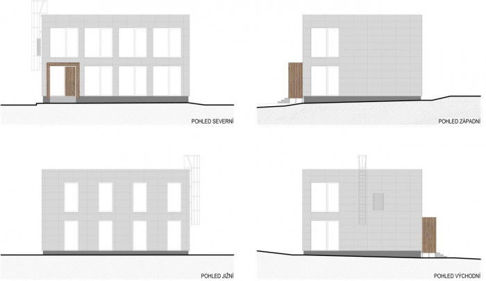 V principu se jednalo o výrazové rozčlenění celkové hmoty domu sestávajícího ze dvou částí. Základní kvádrová hmota byla obložena deskami Cembonit od společnosti Cembrit a na přístavbě, která vznikla ve vstupní části, bylo pak jako kontrastní materiál použito modřínové dřevo.