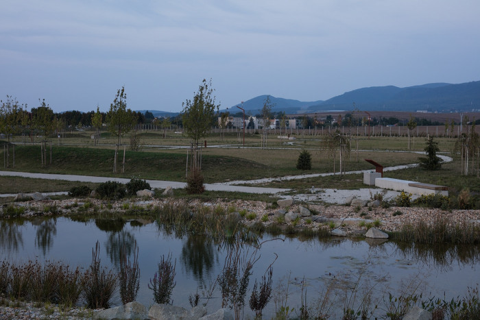 V roku 2003 vypísaná celoslovenská verejná anonymná urbanistickú súťaž. Porotu návrh nášho tímu - Andrea Macejková, Miro Macejko a Marek Tkáčik jednohlasne oslovil. Hlavnou ideou konceptu bolo vytvorenie miesta posledného odpočinku vo forme lesoparku, priestoru nielen pietnom, ale aj na každodenné užívanie. Kombináciou plôch pohrebísk a lesoparku bol určený základný urbanistický princíp. Umiestnenie hrobových miest v rozvoľnenej kompozícii a zachovanie prírodného charakteru územia bolo podporené výsadbou vysokej a nízkej zelene. Prevažne rovinatú plochu územia sme tvarovali. Terénne valy , zákutia, rozvolnená kompozícia. Toto účelové modelovanie terénu vytvorilo optickú i pocitovú bariéru v kontakte s plochami pohrebiska. Svet živých a svet zosnulých v blízkom, no zároveň vzdialenom kontakte. V harmonickom kontakte.