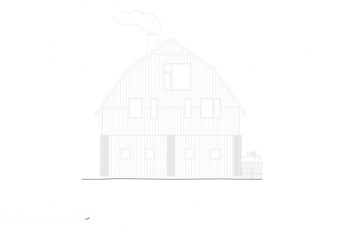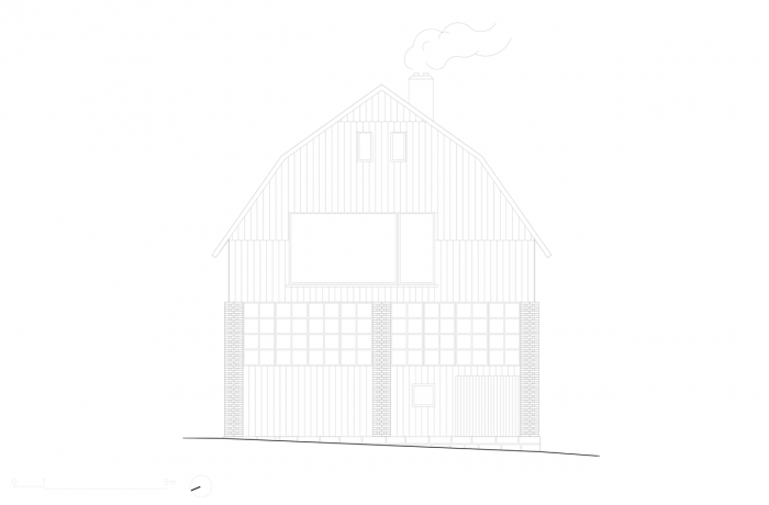 Původně zemědělské stavení bylo během roku 2012 na základě podrobného projektu proměněno v rodinné sídlo s víceúčelovým dvorem. Stávající konstrukce stodoly (obdélný půdorys cca 18,3 × 10,3 m, výška hřebene 10,3 m) byla pouze vhodně doplněna, tak aby splnila nové požadavky vzniklé změnou užívání.