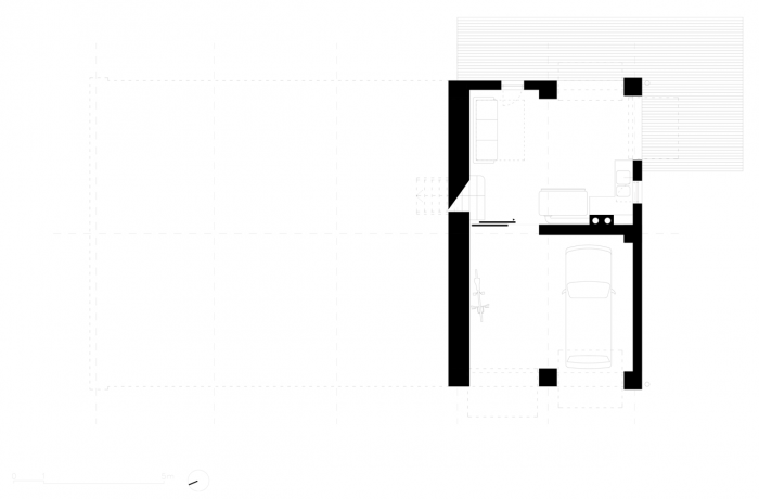 Navržené dispoziční řešení vychází z principu neměnit konstrukci domu, pouze ji případně doplňovat. Za jisté zásahy lze považovat: - průraz příčné zdi pro osazení schodiště mezi suterénní letní kuchyní a vstupním dvorem - prosvětlení vnitřního prostoru skleněnými taškami v polovině západní strany střechy - nová okna v obou štítech, která vychází z potřeb vnitřní disposice, přičemž jsou komponována tak, aby harmonicky dotvářela celkový staro-nový ráz budovy.