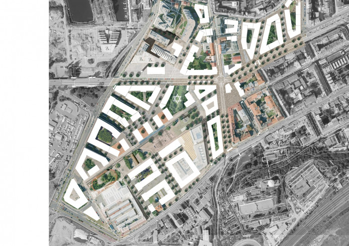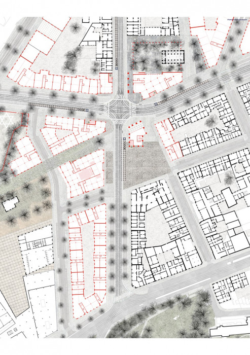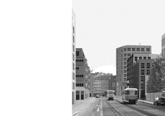 Místo, jenž během posledních 70 let bylo Libeňským korzem, železniční tratí, autobusovým nádražím, tramvajovou spojkou, centrem i periferií, stanicí metra, pěší zónou, které bylo asanováno, zasypáno, i podkopáno, nechť je vystavěno znovu! Křižovatku navrhuji sevřít v každém rohu. Jednotlivé vrstvy rozklíčovat a ty platné definovat, artikulovat jejich charakter. Zakládající struktury najít a posílit, prověřit prostorové možnosti, míru a způsob zastavění křižovatky.