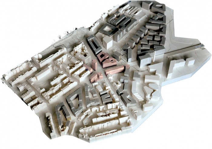 Autor pojmenovává neexistenci jednoznačného těžiště v území, bezkoncepčnost nové výstavby ve vztahu k území. Navrhuje vytvoření jasného a čitelného centra, struktury, iniciačního bodu, který bude dále rozvíjen. Nově navrhované budovy nenásilně dotváří rámec centra s jemnou dominantou, věží. Náhled do zamýšleného schématu širšího zastavění je přesvědčivý, vyvážený, s odkazem do historie, ale bez patosu. Práce má vysokou kvalitu nejen v rovině návrhu, ale i její rozsah a zpracování je nadstandardní.