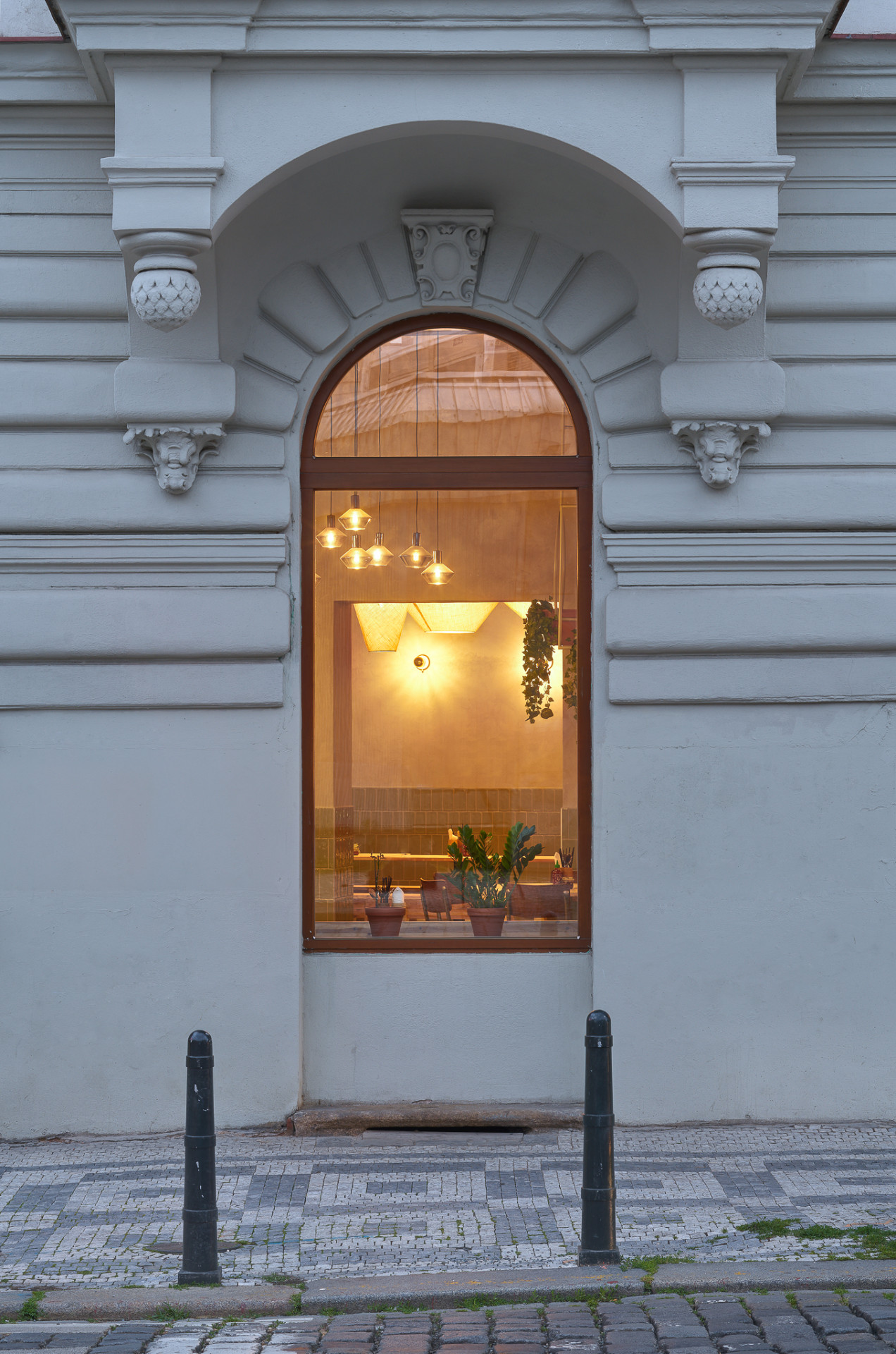 Prostor osvětlují série závěsných lampionů ve hřejivě okrovém tónu, ve vstupním prostoru ze stropu visí shluk malých skleněných lustrů a světelnou atmosféru doplňují nástěnné žárovky se zlatým vrchlíkem.