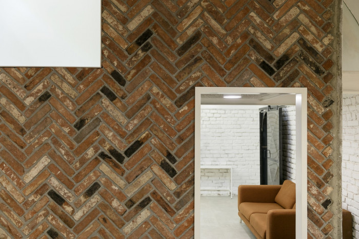 Koktejl sdílených kanceláří vyplňuje část přízemí. Po ošlapaném pískovci schodiště se nakonec vyšplhá i o patro výš do protáhlého zálivu kuchyně. Obě podlaží jsou těžká, nejčastěji vykrojená valenými klenbami. Čisté bílé klenby však zdem všechno břímě odpouští. I naším přáním bylo neudělat tu téměř nic.