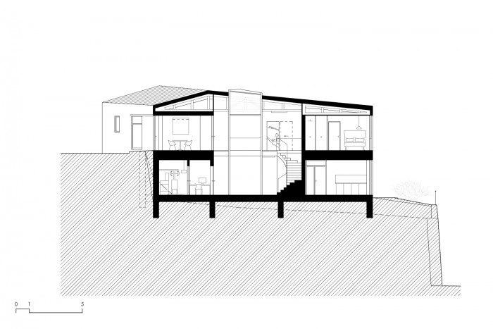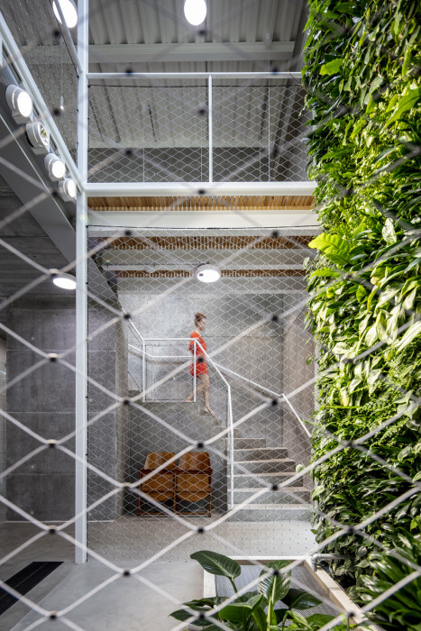 Od severu k městu je dům silný a solidní. Na jihu domácký a skromný. Uvnitř rozmanitý a funkční. Jednoduché provozní schéma dvou osových chodeb v ortogonálním kříži umožňuje přirozenou vnitřní cirkulaci. Zelené atrium s otevřeným schodištěm propojuje obě podlaží do přehledného celku.