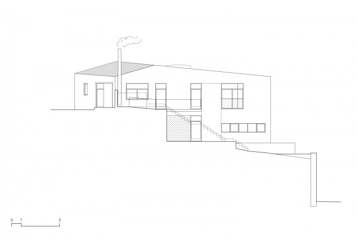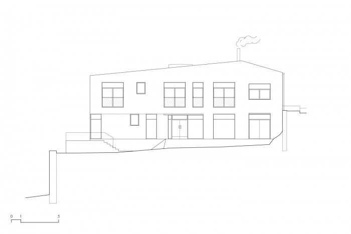 Nový dům byl založen na dříve zastavěném svažitém pozemku s množstvím pobořených opěrných zdí a relikvií někdejší kvalitní sudetské zástavby. Z původního německého domu zde zbyly pouze rozpadající se základy.
