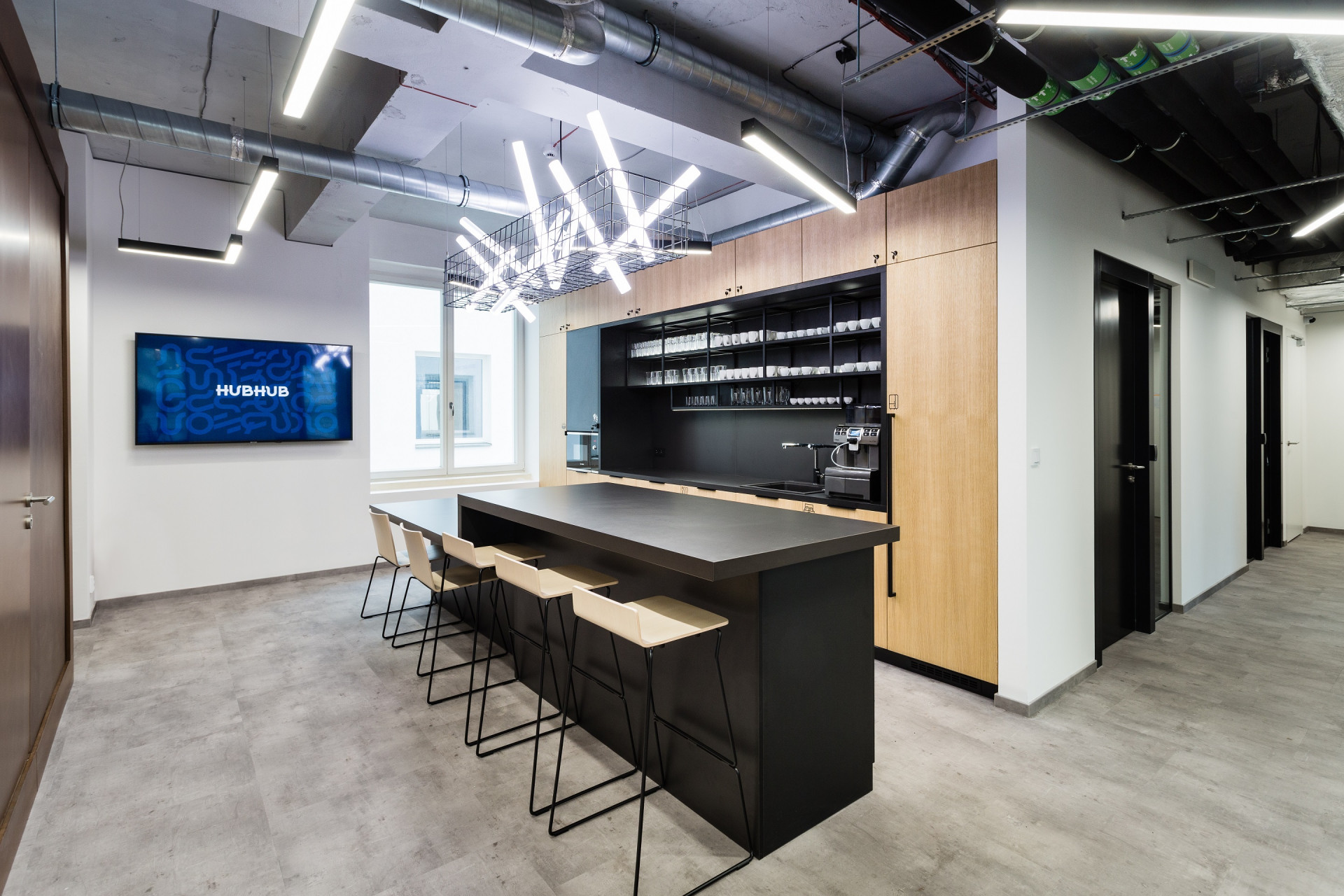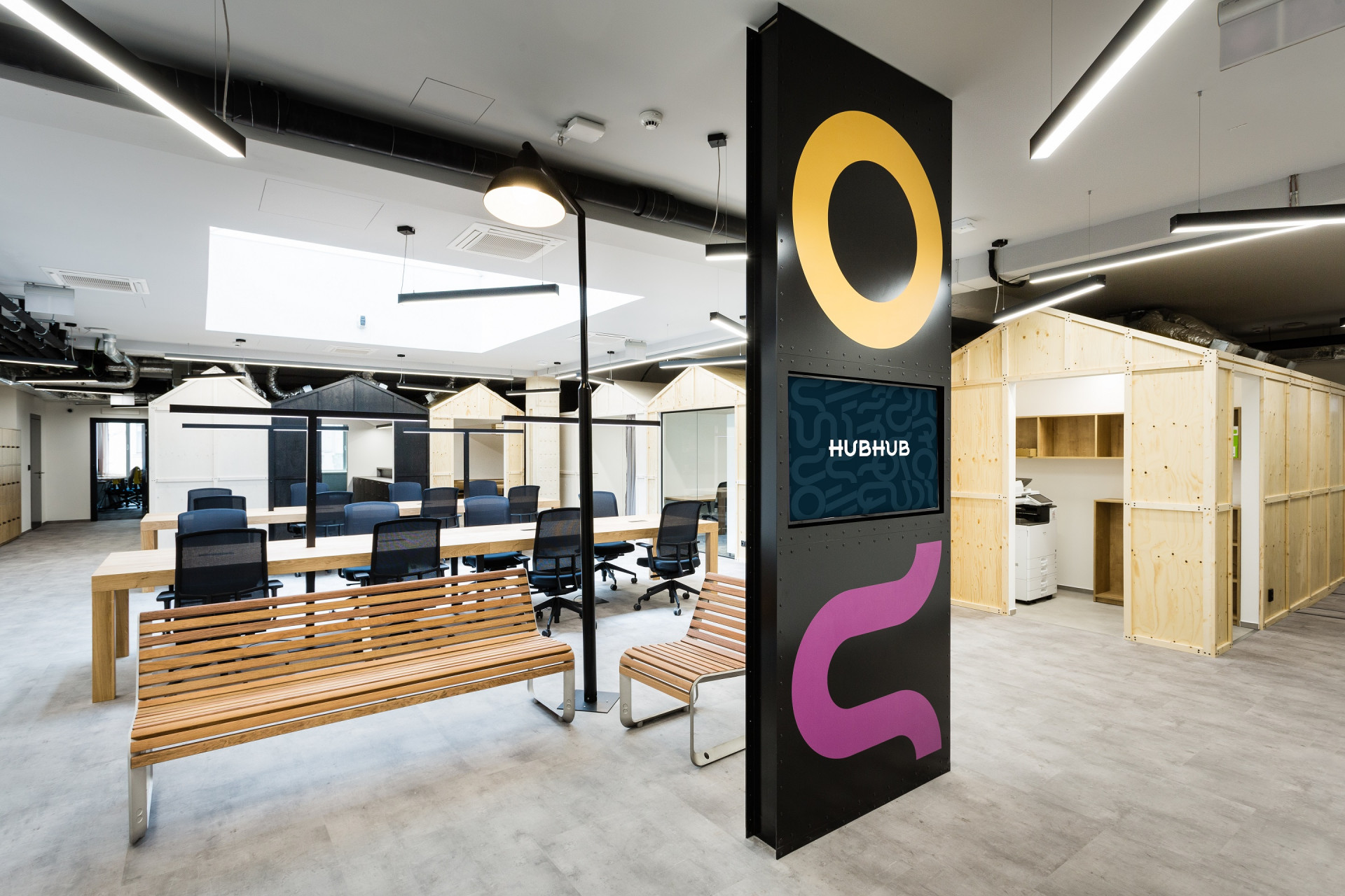 Nároží, celoplošné stěny a místa setkávání jsou osvěžena drobnými hravými prvky jako popisovatelné stěny, popelnice s osvěžením, kancelářskými dopravními prostředky (skateboard, koloběžka). Volné stěny jsou věnovány místním umělcům, nápadům vycházejícím z řad členů Hubhub. V žádném obchodním domě nesmí chybět dětský koutek s kuličkami!