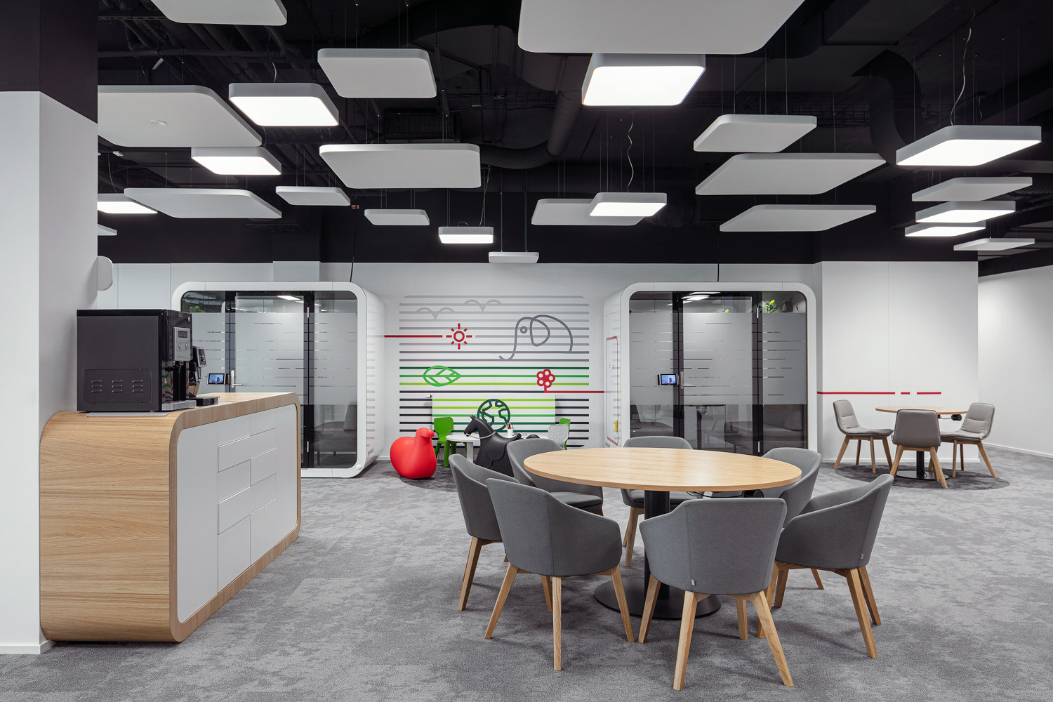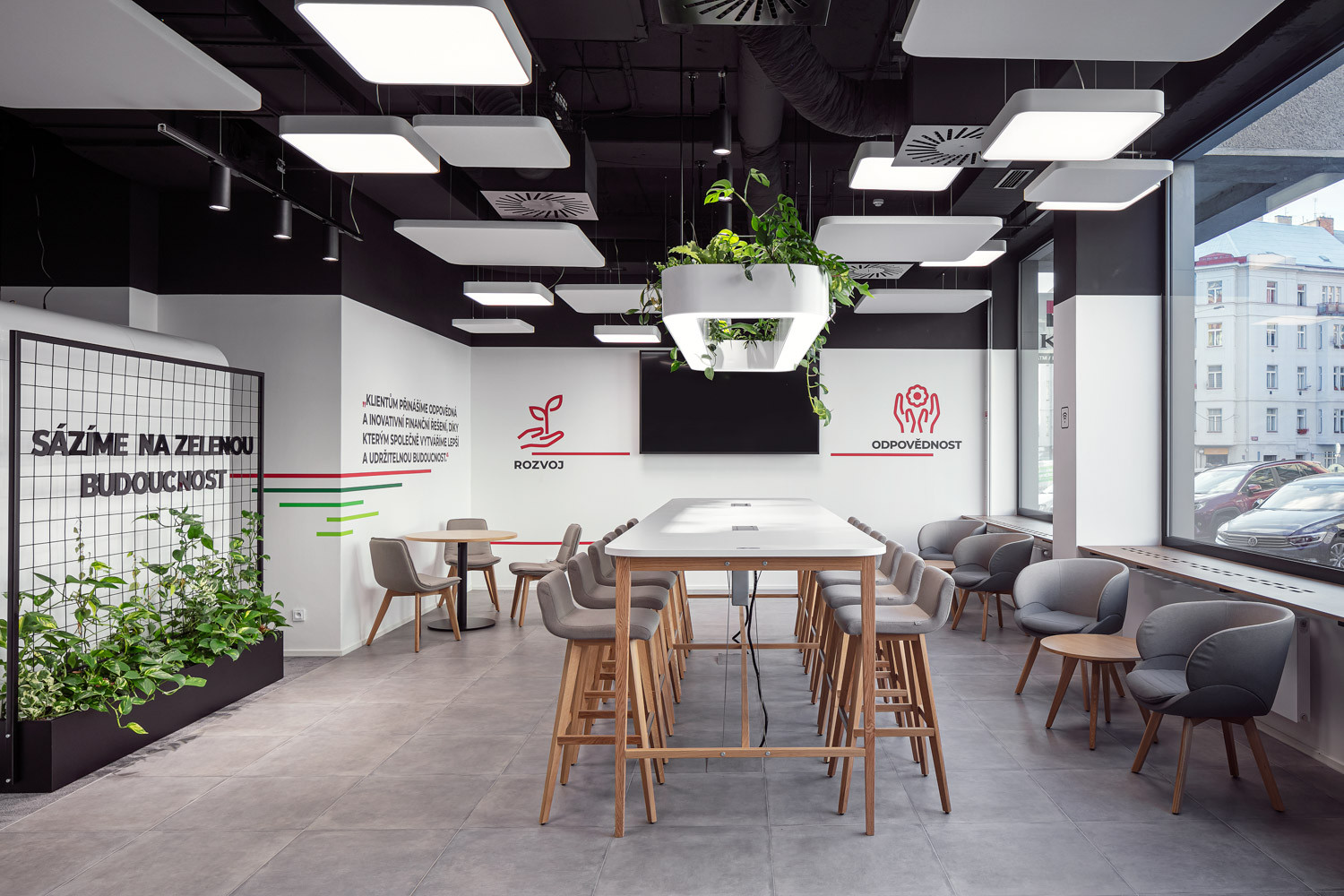 Pobočka obsahuje několik míst určených pro setkávání. Jsou jím „kavárna“, workshopový prostor mezi jednacími budkami, kuchyňka s relax zónou a strom pod světlíkem. Tyto plochy slouží především k pracovnímu kontaktu, výměně myšlenek, vzdělávání a sdílení zkušeností. Banka je místem setkávání. Místem, kam lidé chodí rádi.