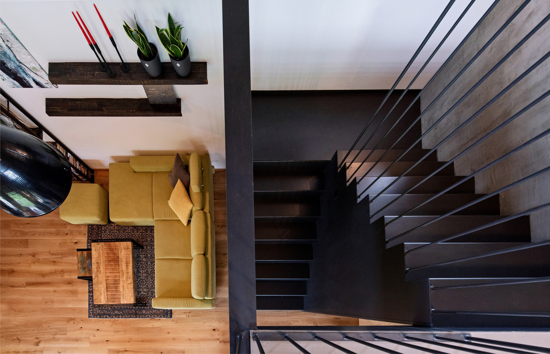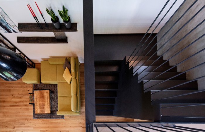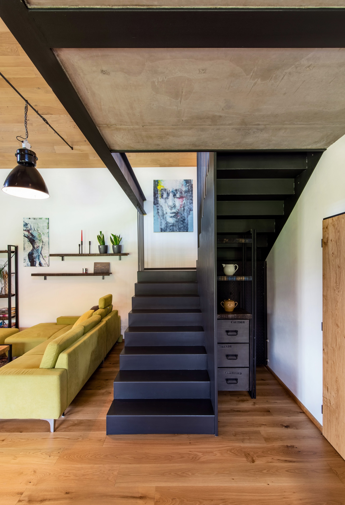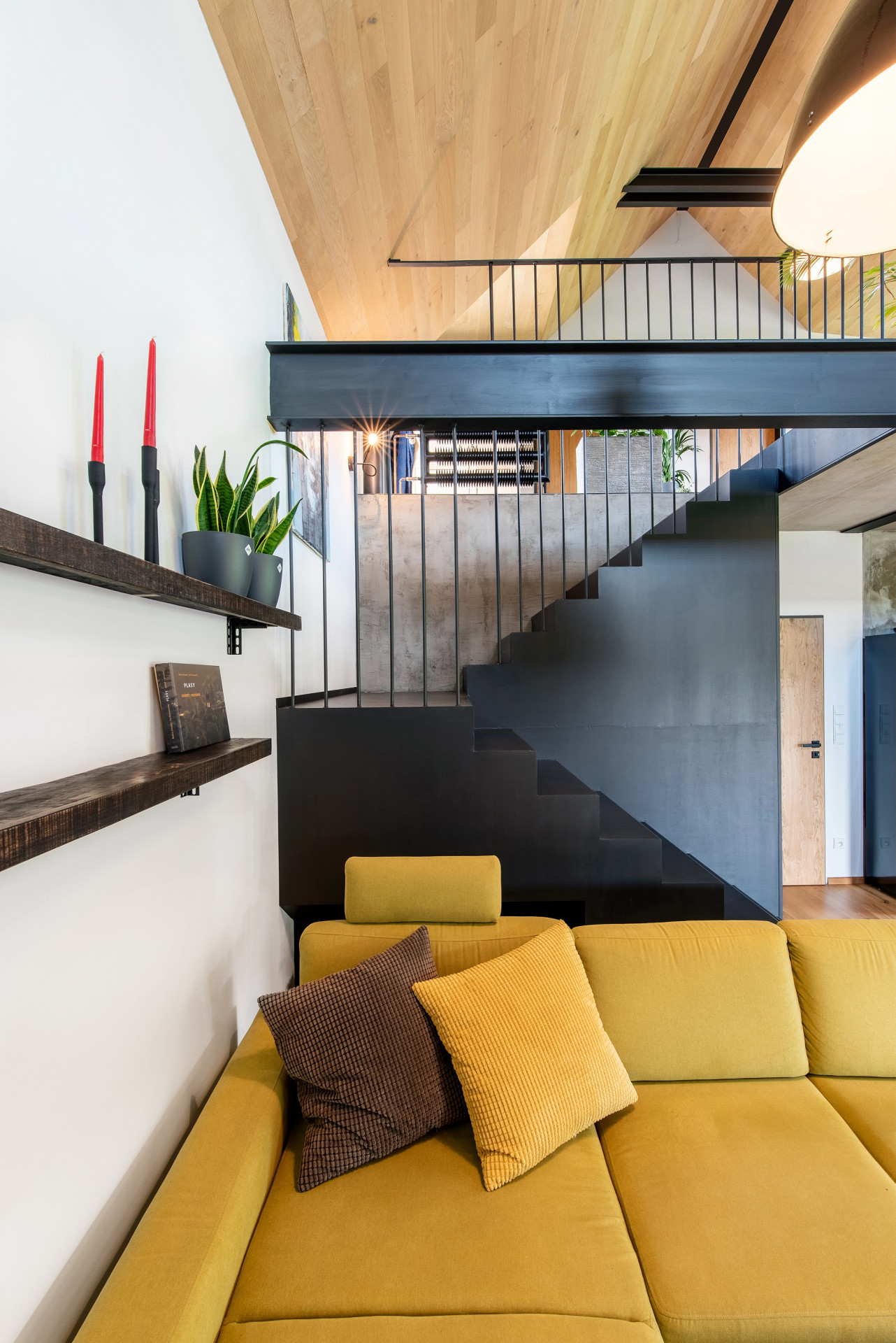 Po několika letech se nám ozval spokojený klient, se kterým jsme již navrhovali rekonstrukci bytu na Břevnově. Největším kreativcem byl právě on, když přišel s nápady jako postel na zdvižných pístech, masivní ocelová „Íčka“ s pojízdnými svítidly či „cetrisová“ kuchyně. Tentokrát bylo zadání o chlup větší a opět plné skvělých experimentů, které mají architekti rádi.