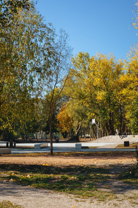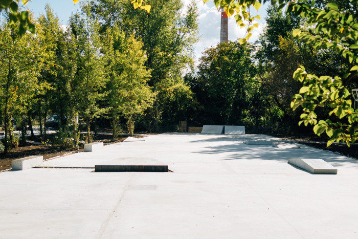 Nejzajímavější překážkou je 15 metrů dlouhý rádius, vyskládaný z betonové dlažby s bazénovým lemem, který je v českém prostředí zatím ojedinělým prvkem. V ploše je umístěn také basketbalový koš pro hráče streetballu. Díky tomu se tak prostranství stane využívané různorodými skupinami obyvatel.